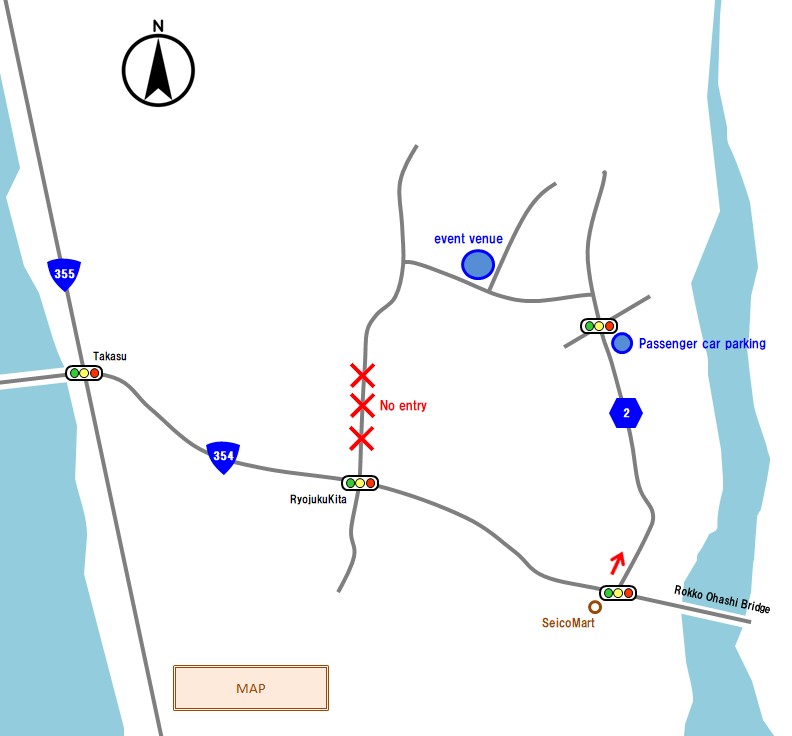 A shuttle bus will run from the passenger car parking lot to the event venue.