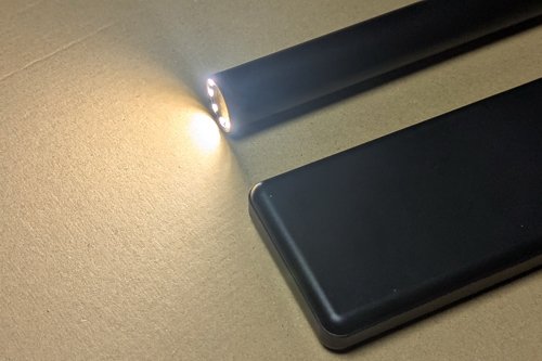 筐体中央部分にUSBポートが付いており、そこにモバイルバッテリー等の電源を接続すると光る仕掛けです。