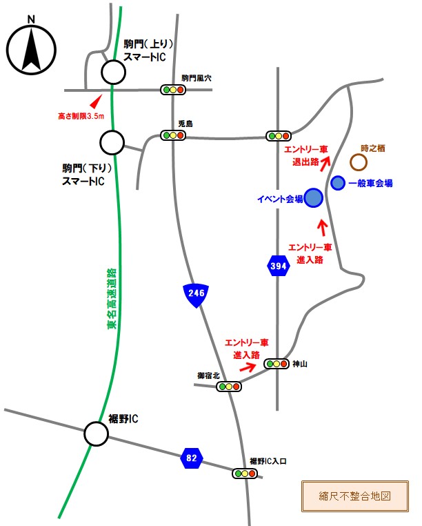 ※サービスエリア、道の駅等で時間調節してご来場ください。