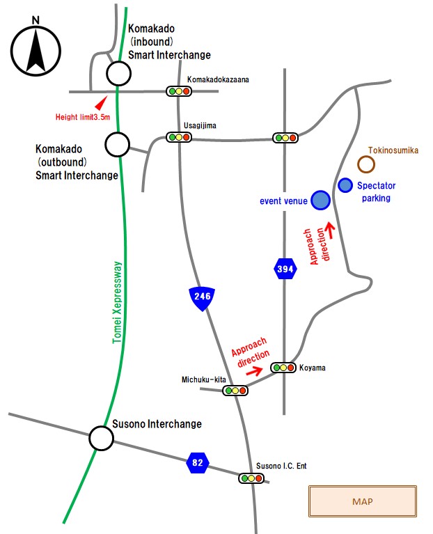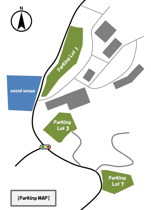 To enter the event venue, turn left when coming from the direction of the Susono Interchange.
