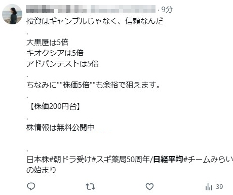 SNS上に以前から多くある投資にまつわる情報を投稿しているアカウント。